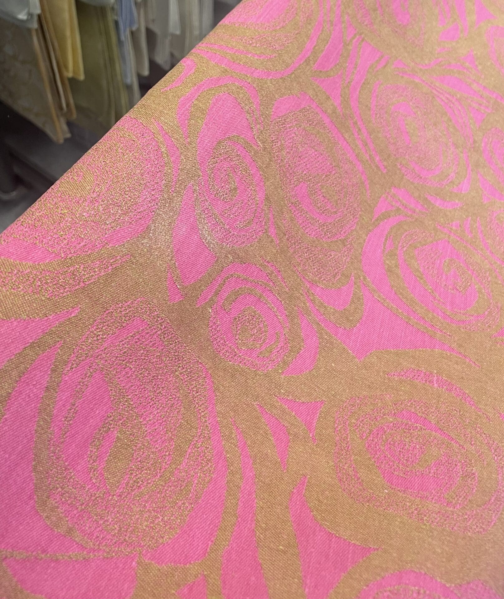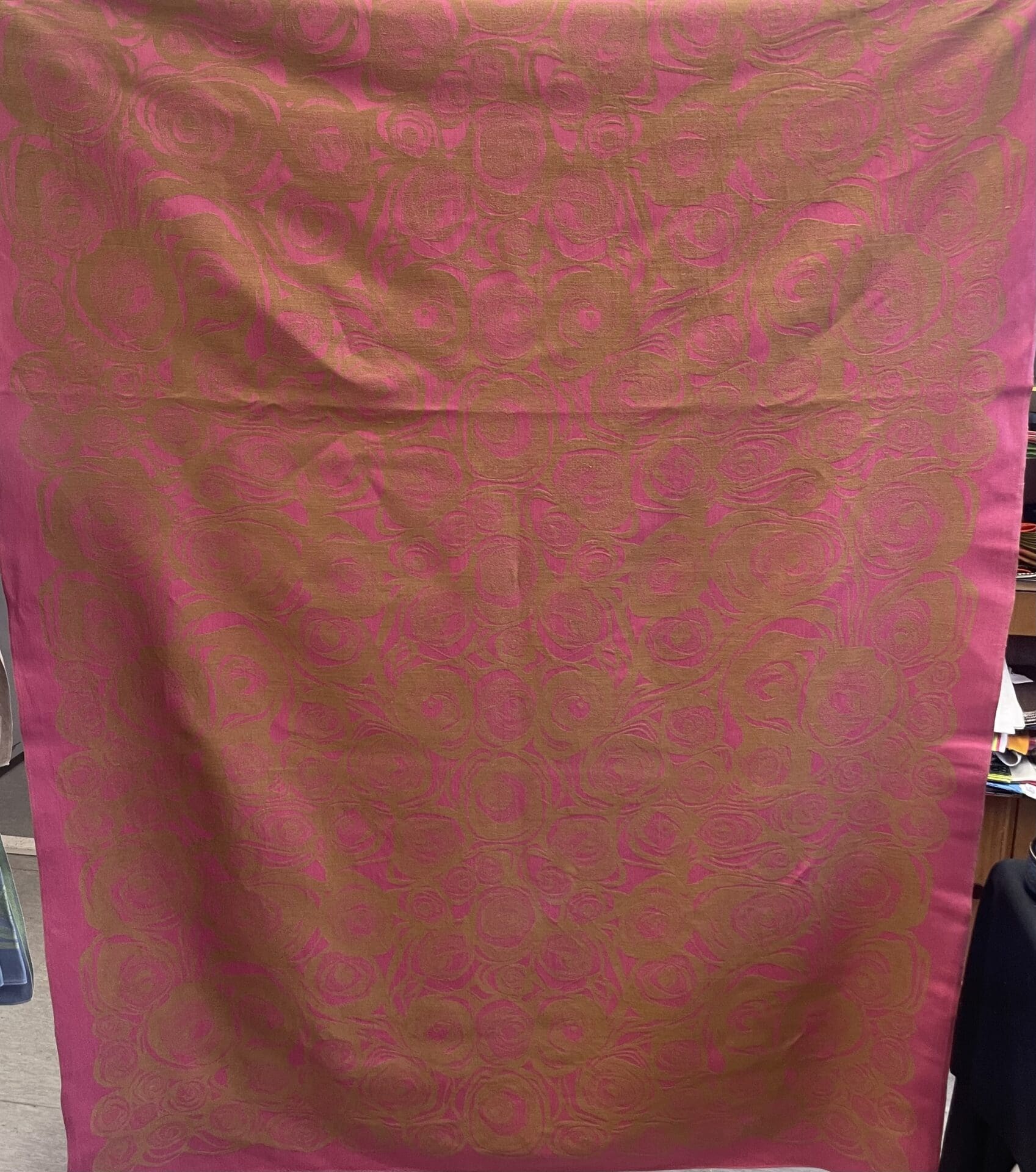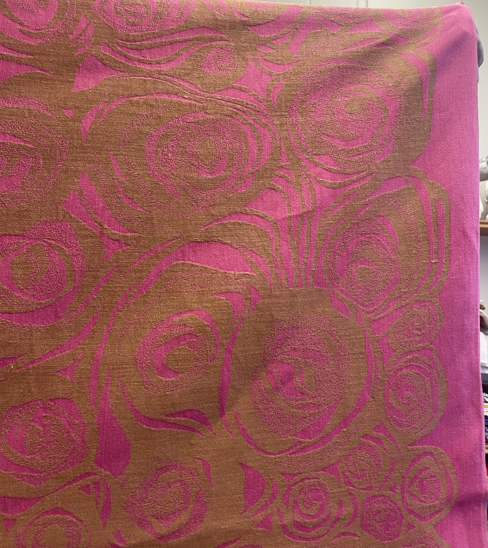 Tampella pink Primavera Tablecloth 133x220cm Marjatta Metsovaara. Some wear. Half linen.