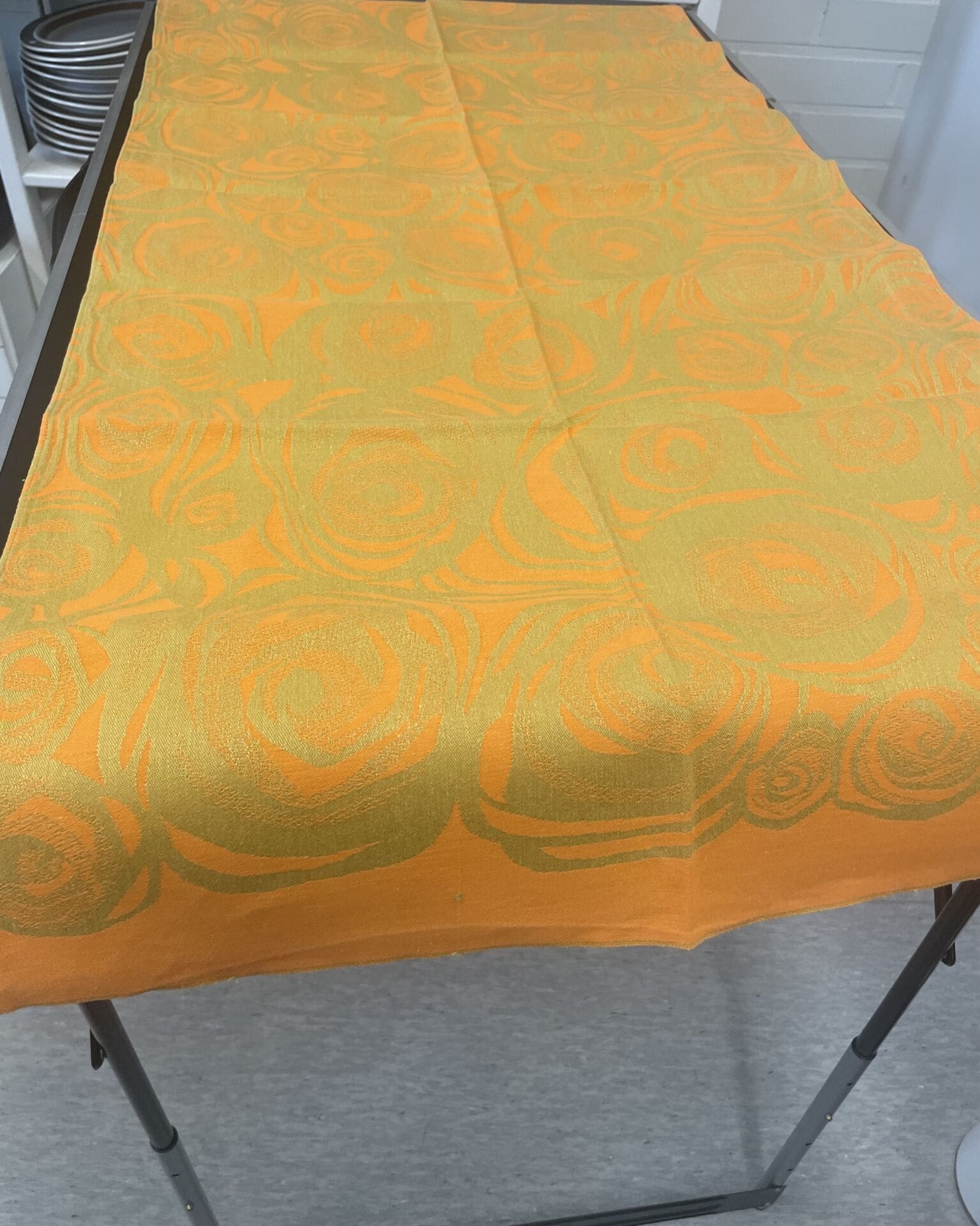 Tampella Primavera Runner orange 56x128cm Marjatta Metsovaara. Good condition. Half linen.