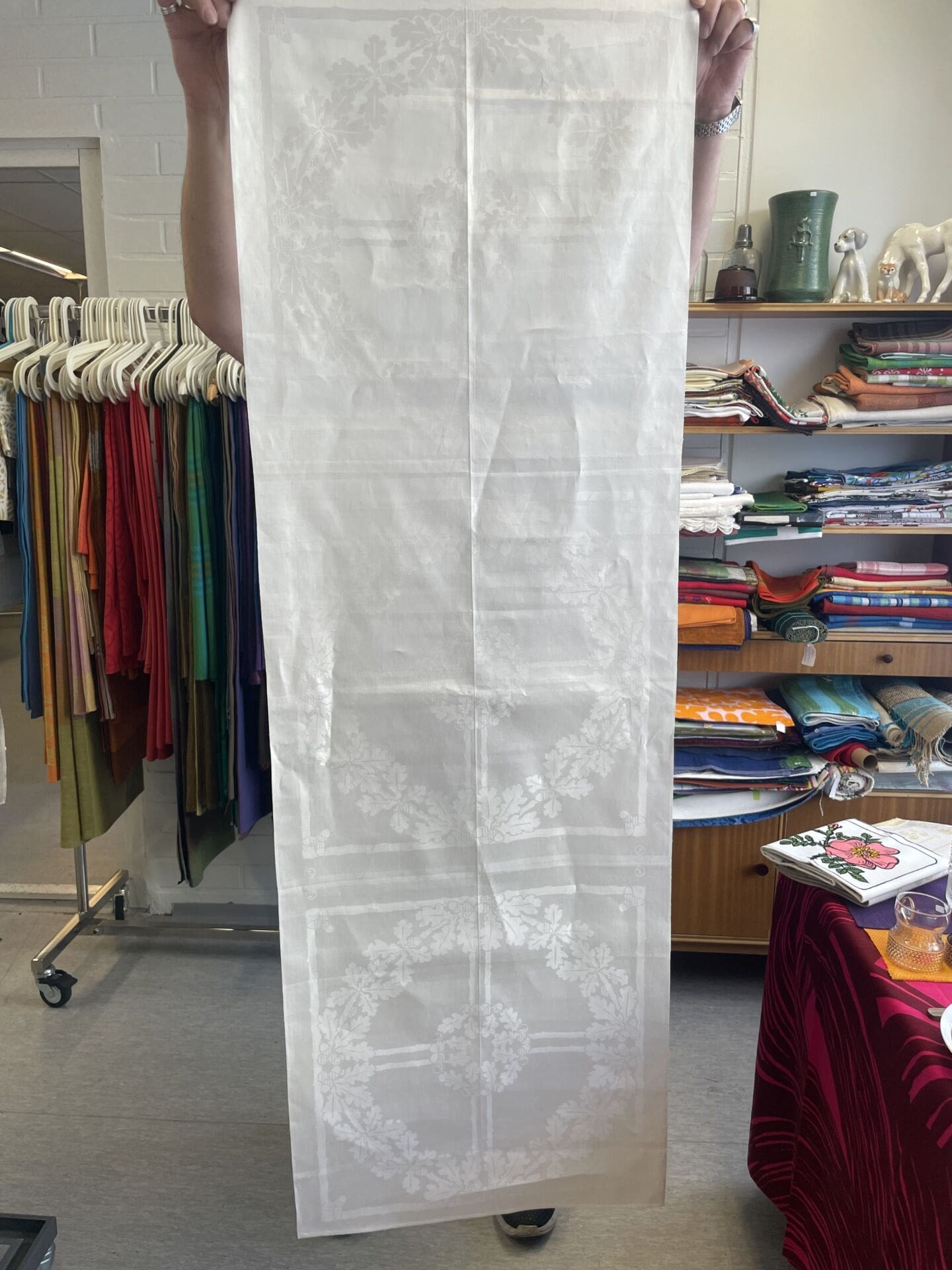 Tampella Runner Tammenlehvä 51x152cm Aili Rancken. Very good condition. A-Class linen. Actually 3 napkins in a row. Was in production during 1932-76.