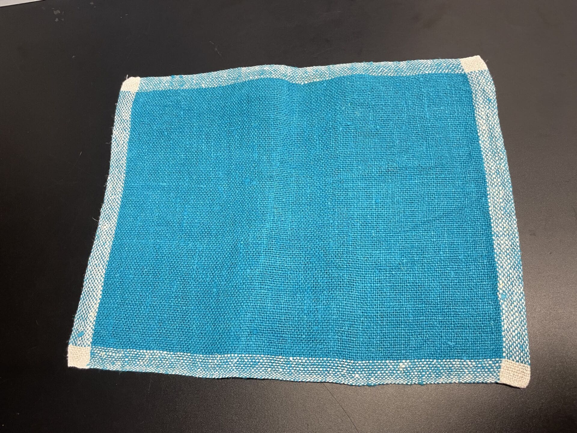 Tampella Rustica Place Mat Turquoise 30x39cm Dora Jung . Good Condition. Was in production 1960-73. Crash linen.