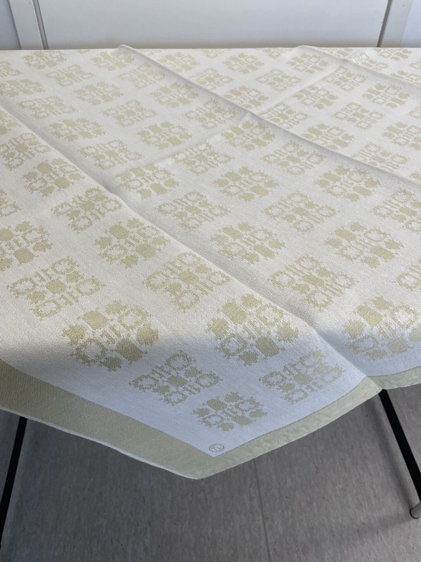 Tampella Tablecloth Kukkaruutu 97x87cm yellowgreen. Good condition. Half linen. Was in production during 1960-68.