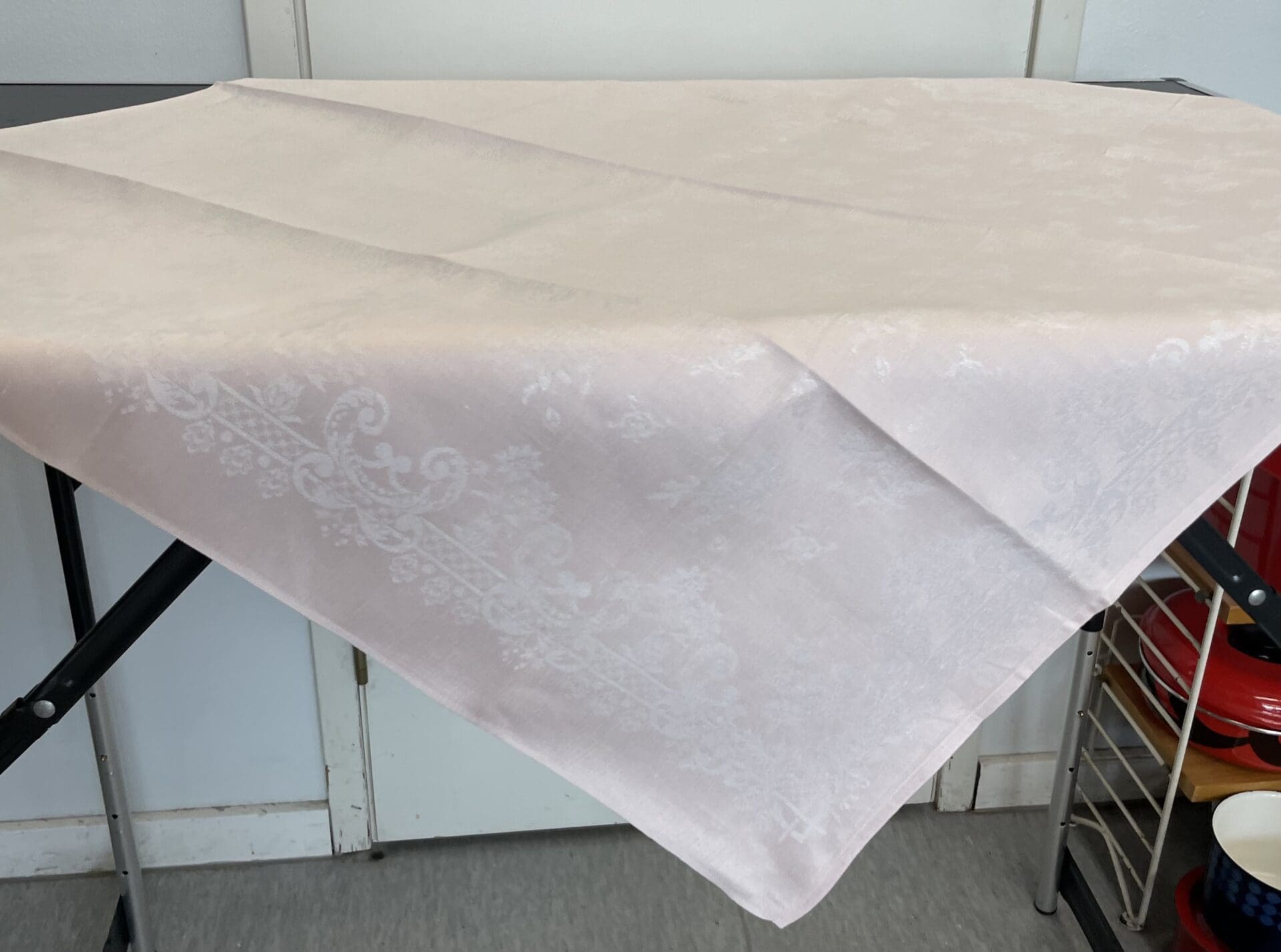 Tampella Tablecloth Rokokoo 90x82cm linen. Good condition, one tiny dark spot. Designer Siri Brunou. Was in production during 1898-1979.