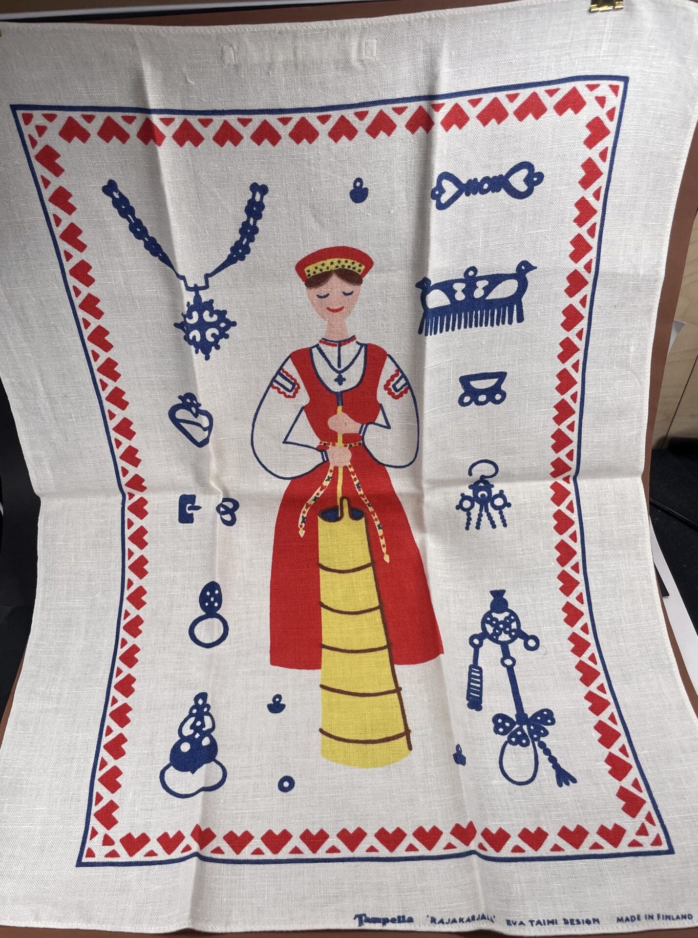 Tampella Tea Towel RAJAKARJALA Eva Taimi. Good condition. Linen. 1960’s.