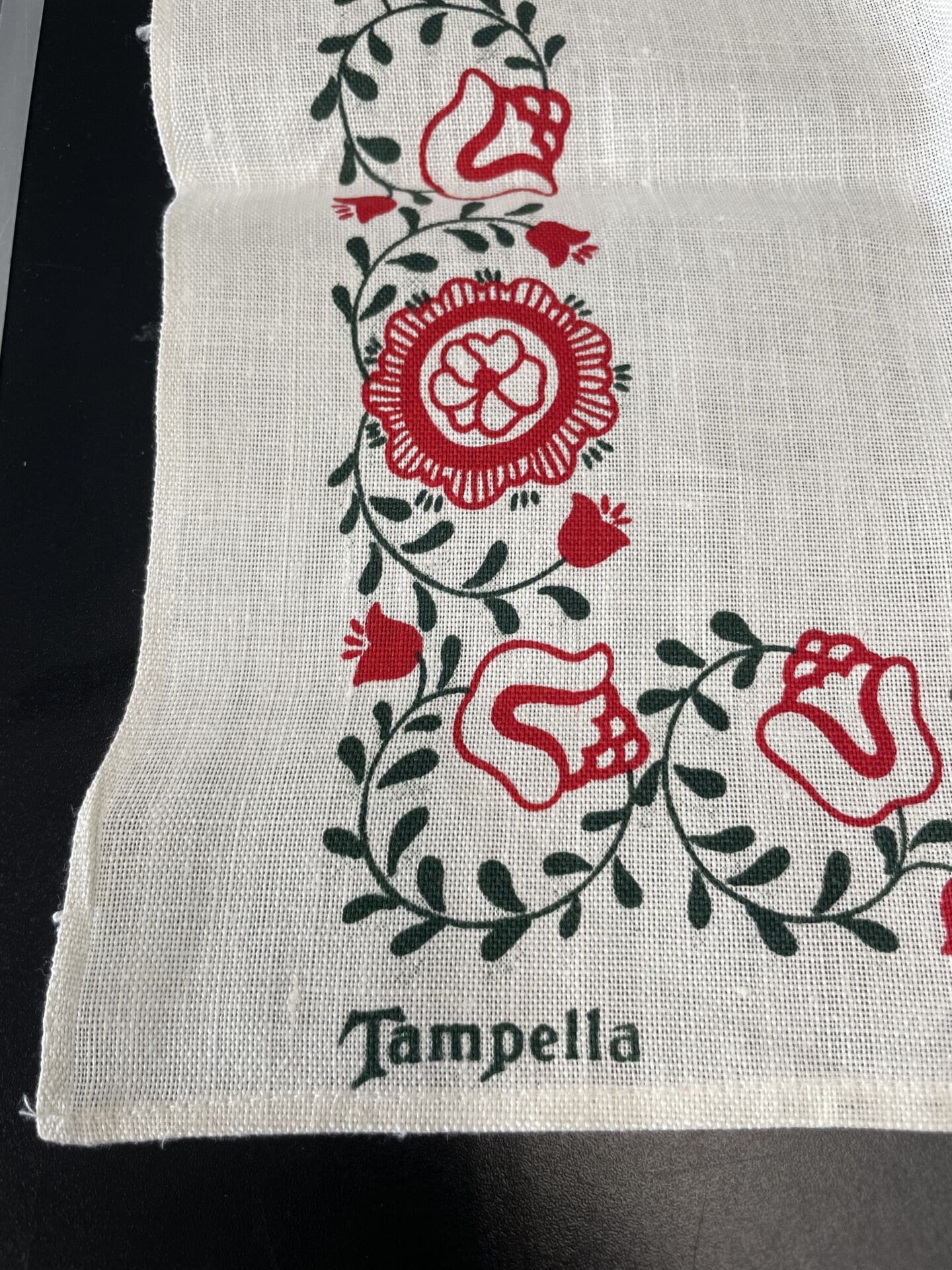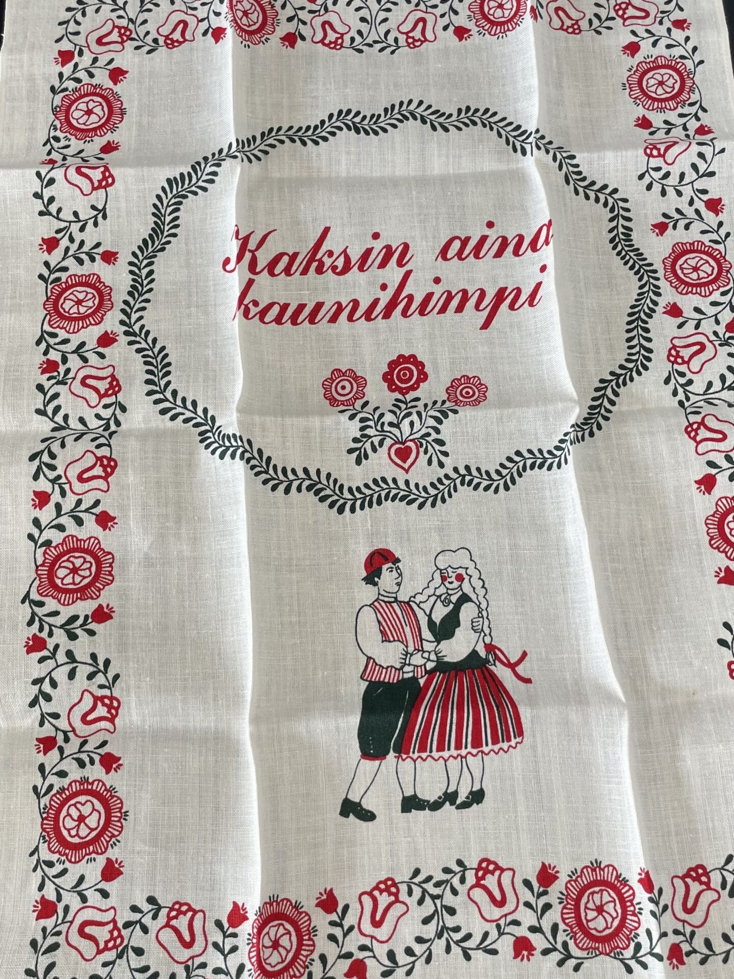 Tampella Teatowel “Kaksin aina kaunihimpi” Anneli Arikka-Lammi. Very good condition. Linen. From 1979.