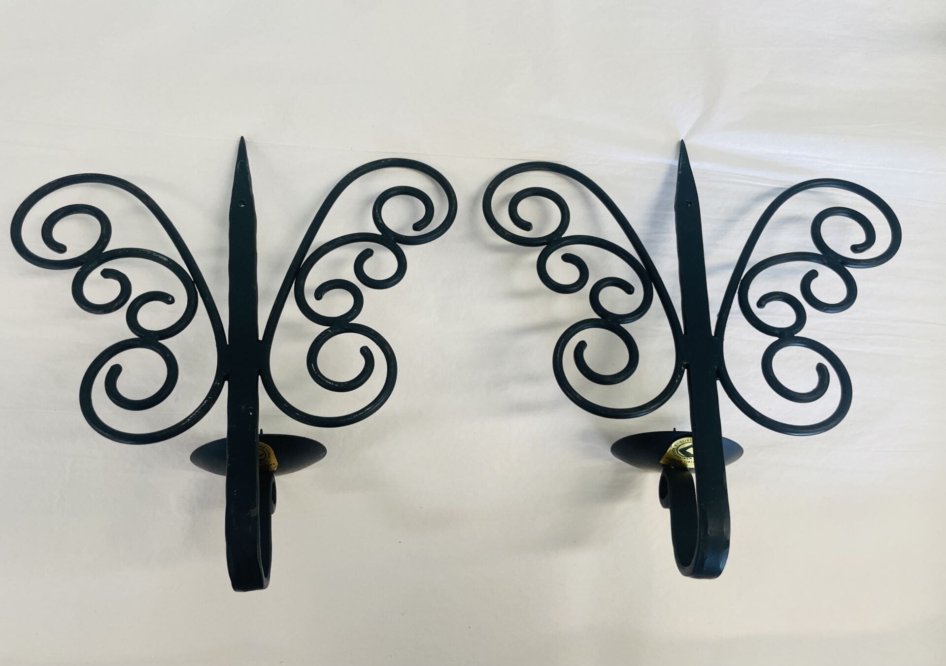 Wrought Iron Candlestick Pair Taidetakomo Hakkarainen. Hight 24cm 23cm wide. Good condition.
