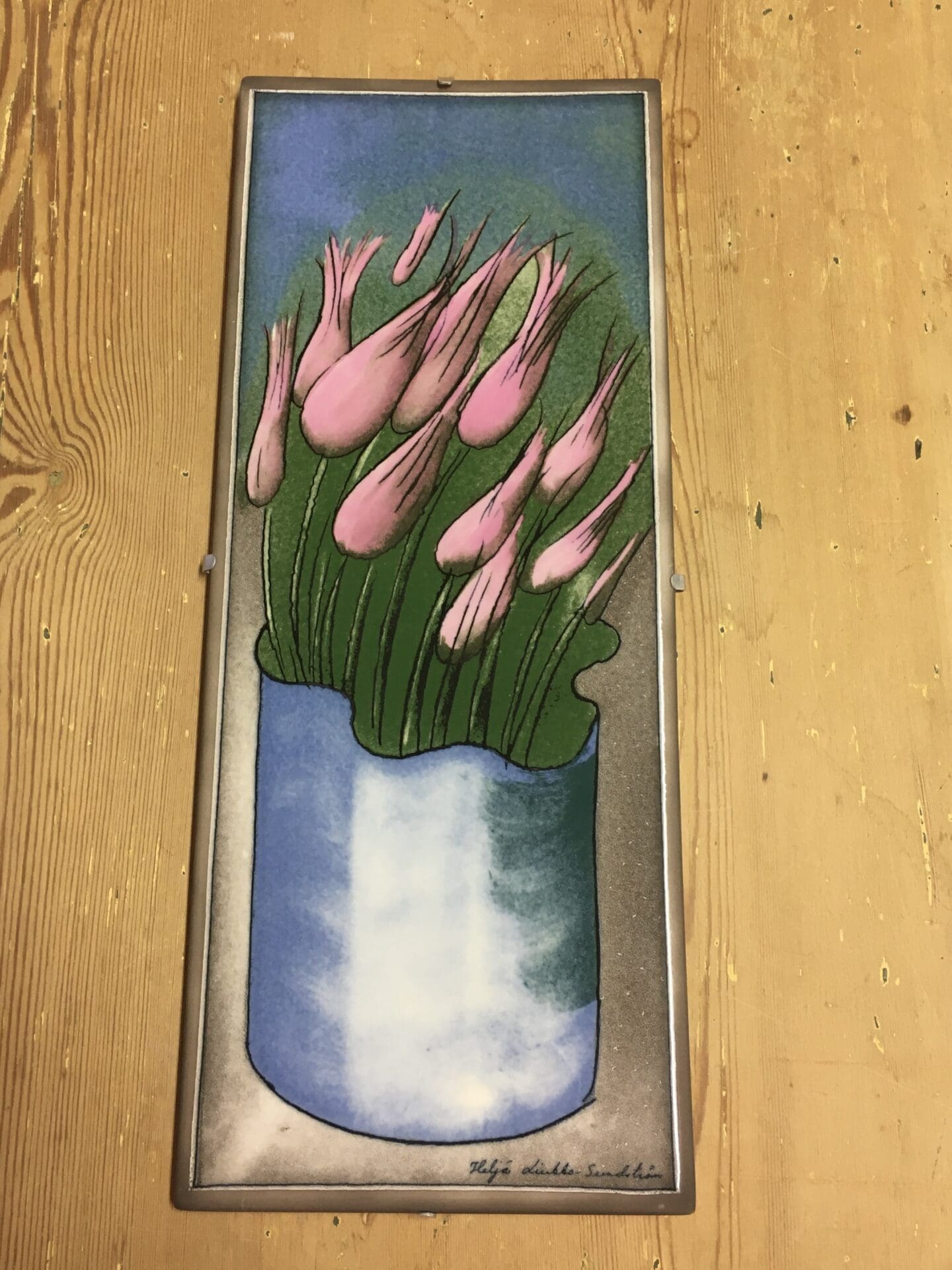 Heljä Liukko-Sundströmin suunnittelema seinälaatta ”Silmän ilo”.Korkeus 43cm. Hyvä kunto.