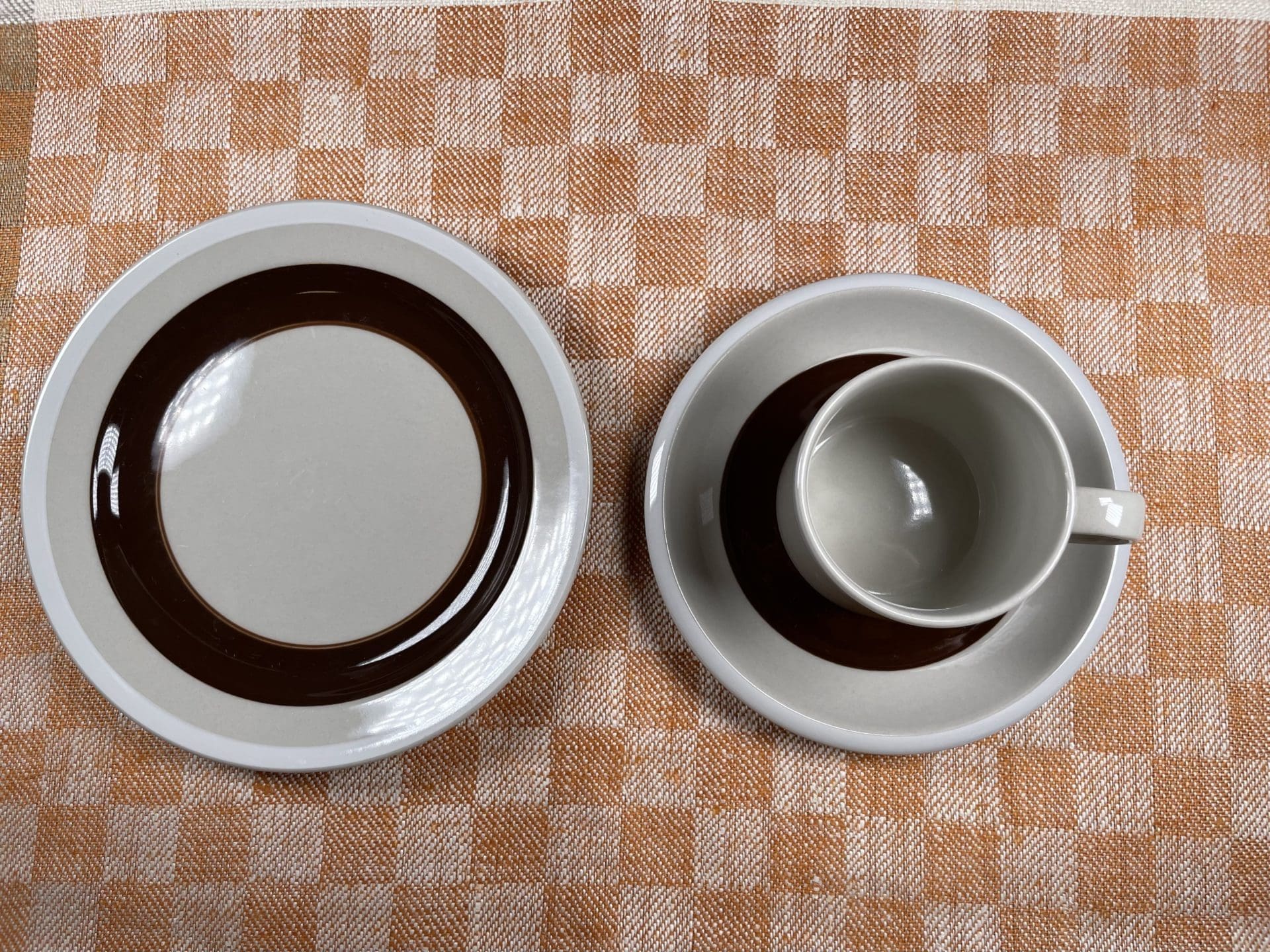 Arabia kahvikuppi, tassi ja pullalautanen Raito