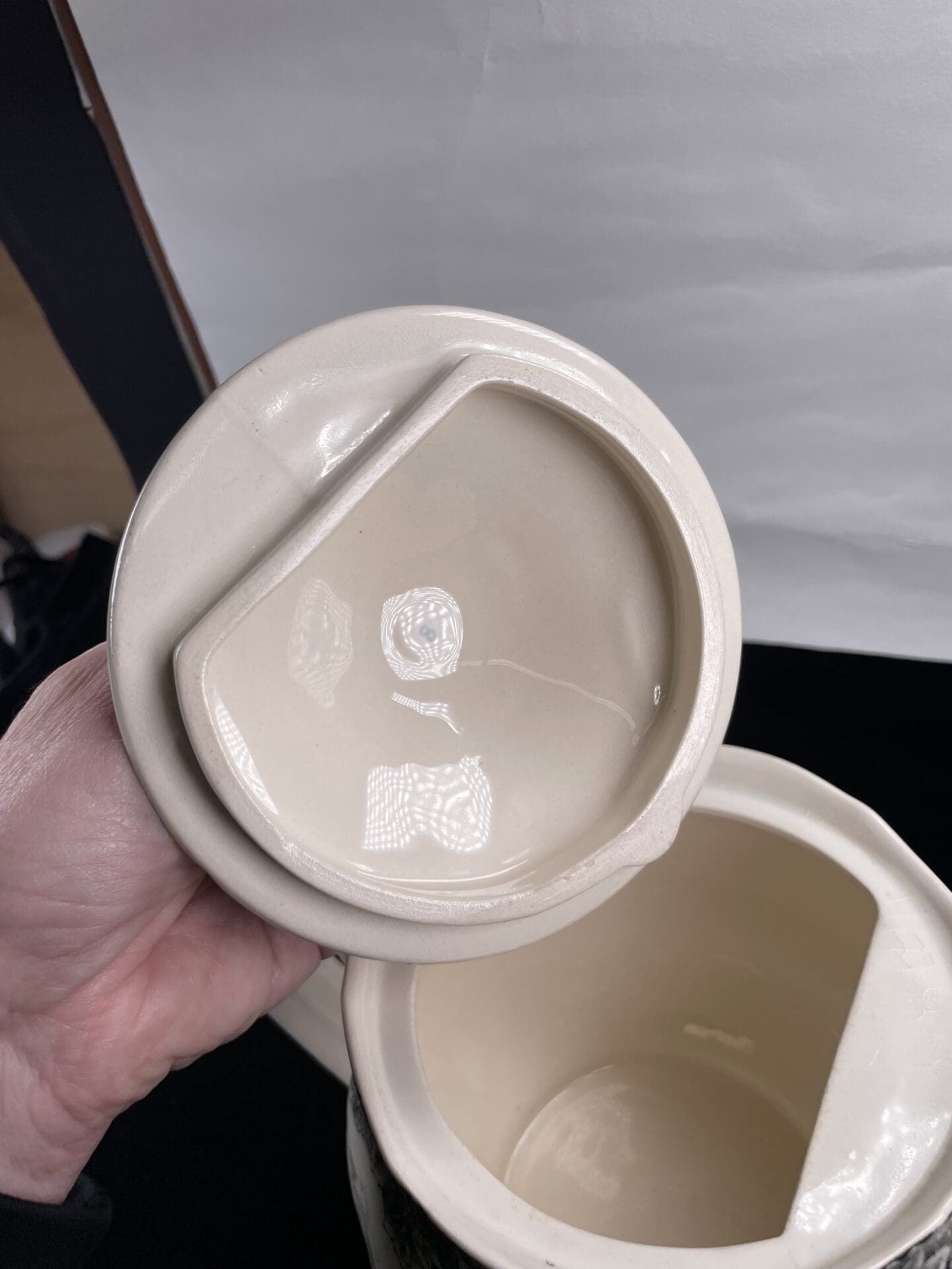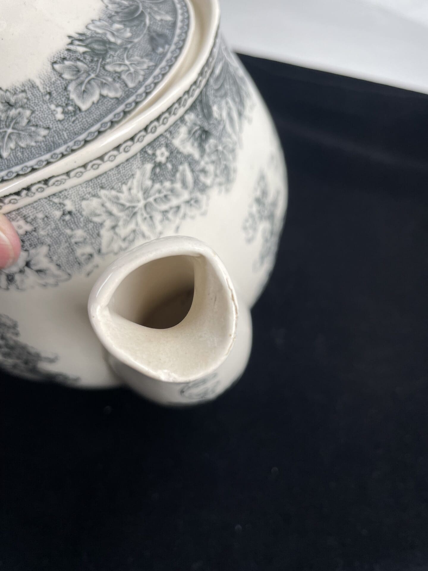 Arabia musta maisema iso teekannu 19cm. Nokassa vähän sanomista ja kannen alla krakeloitumaa kannun yläosassa.