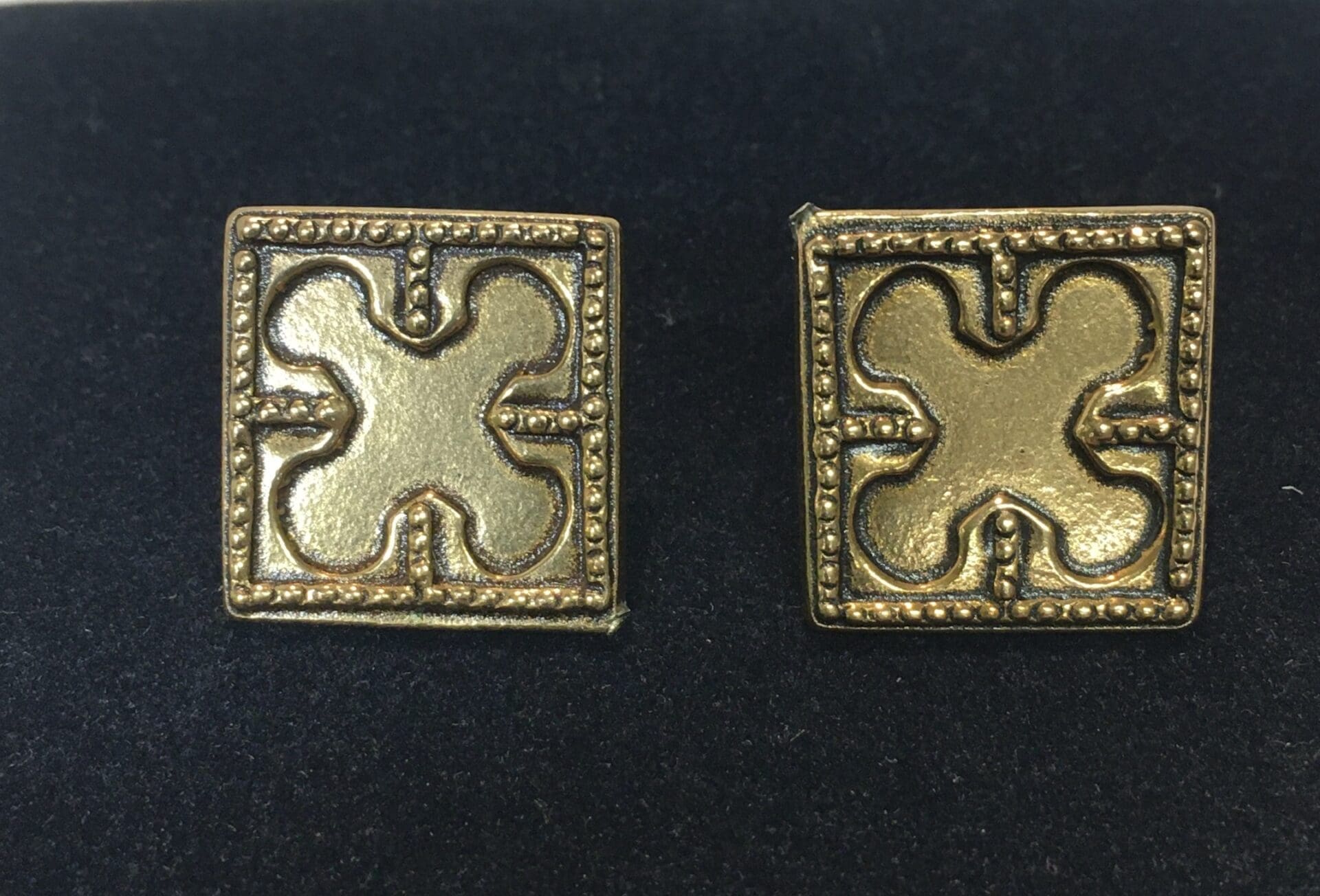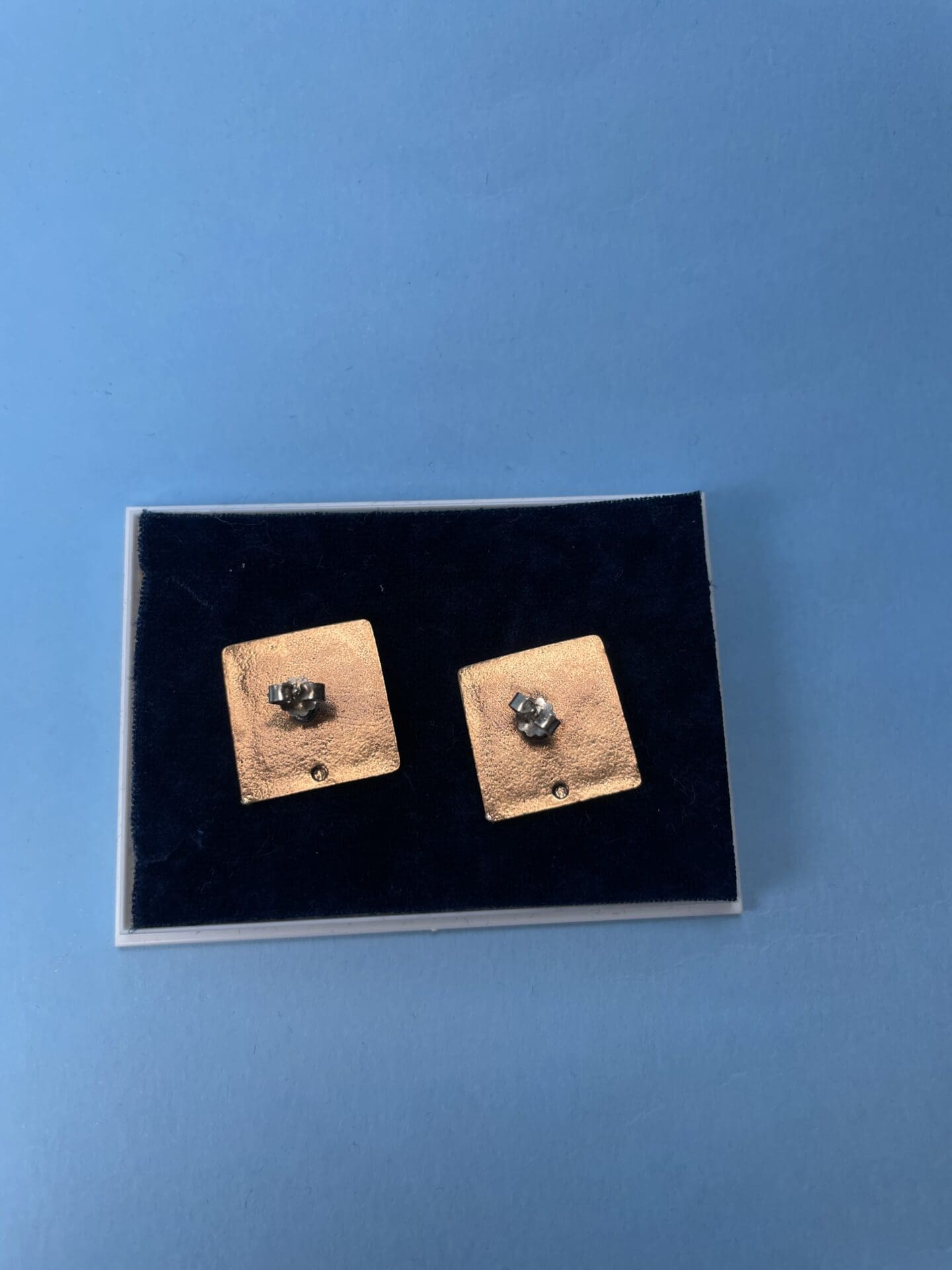 Kalevalakoru korvakorut pronssia 20x20mm. Tappi kiinnitys. Hyvä kunto.