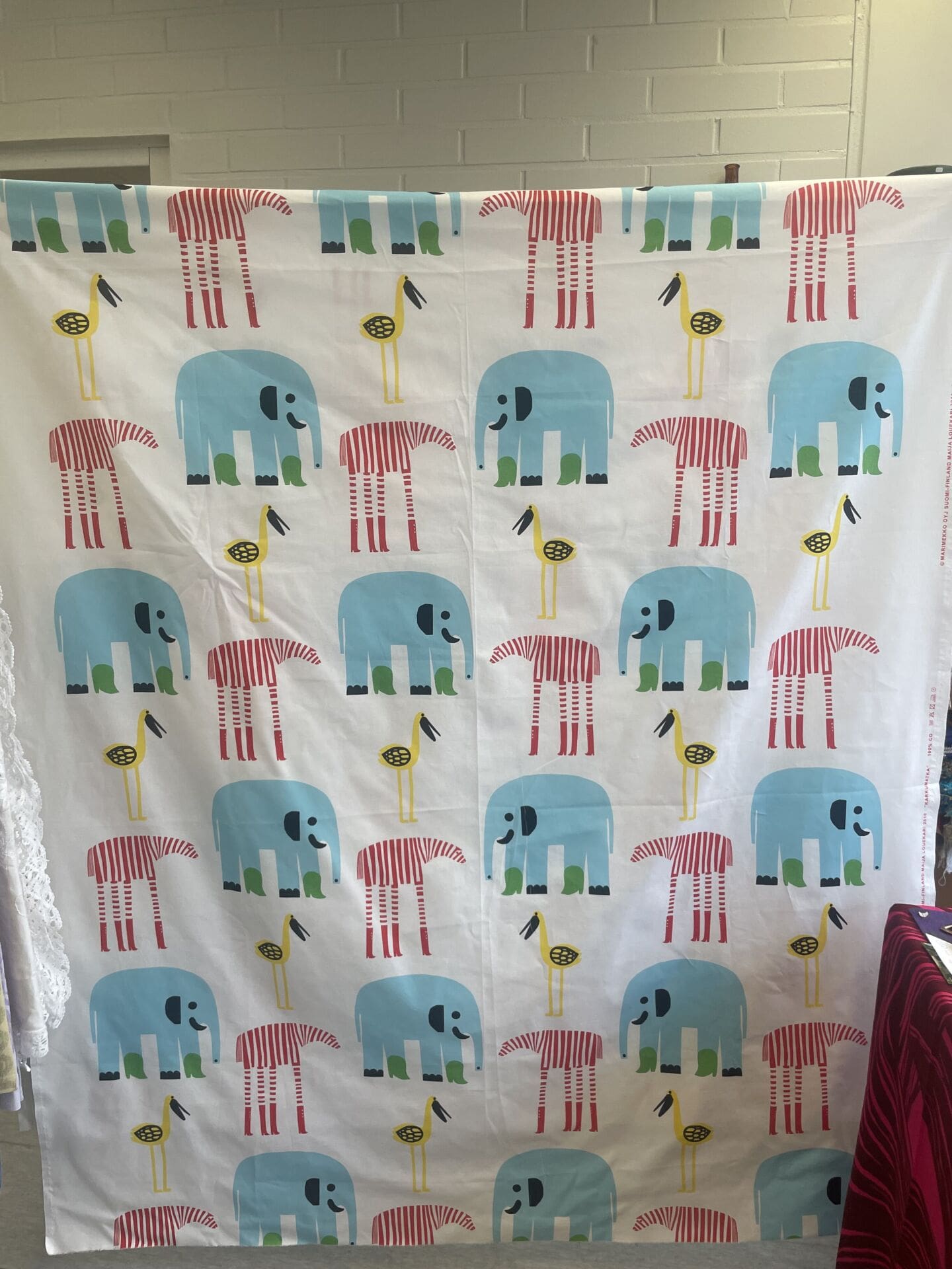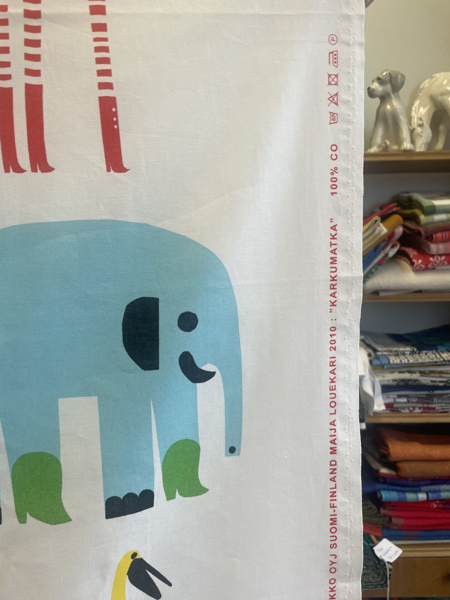 Marimekko kangas Karkumatka 144x305cm Maija Louekari. Pientä värivirhettä. Puuvillaa.