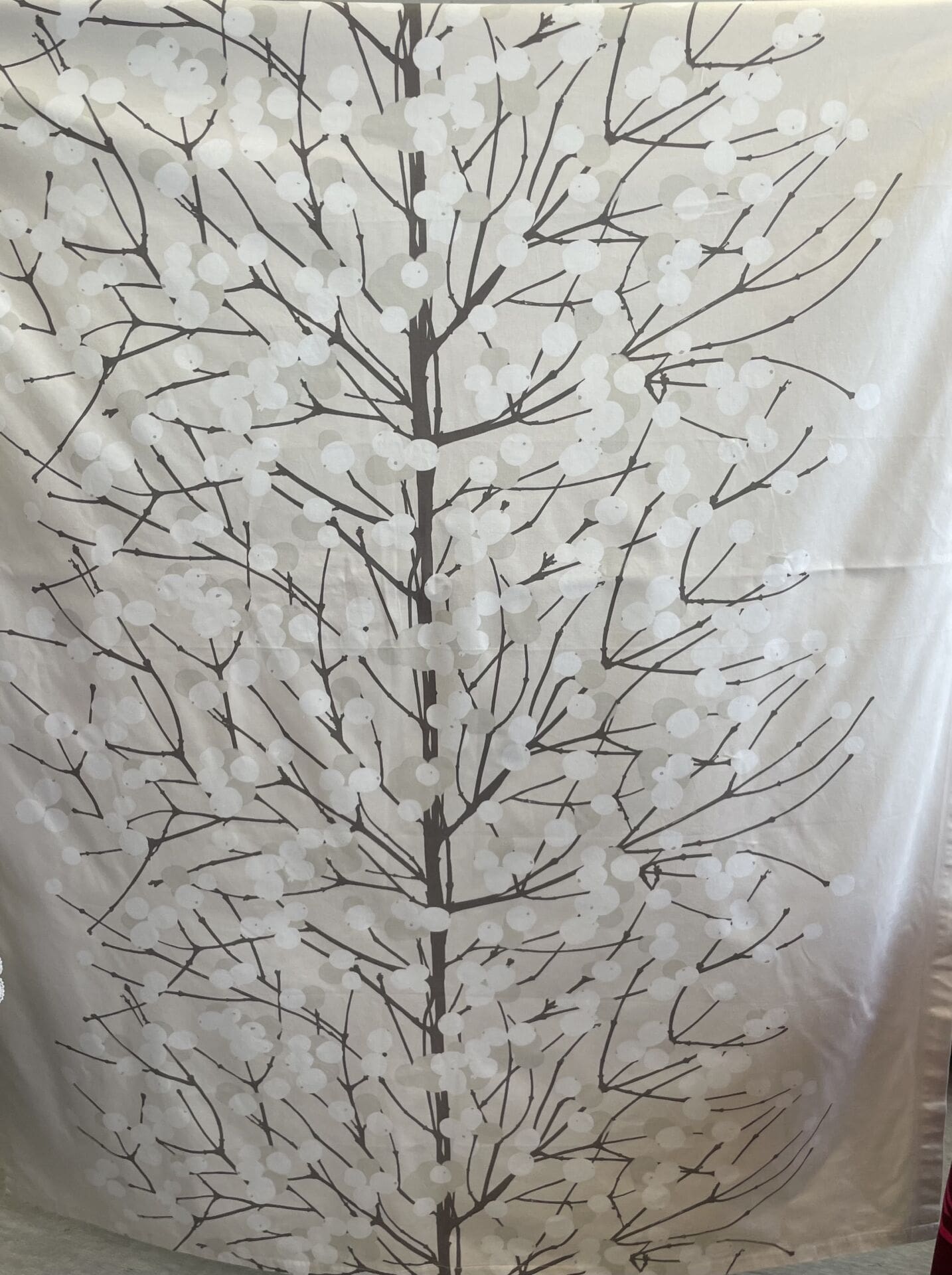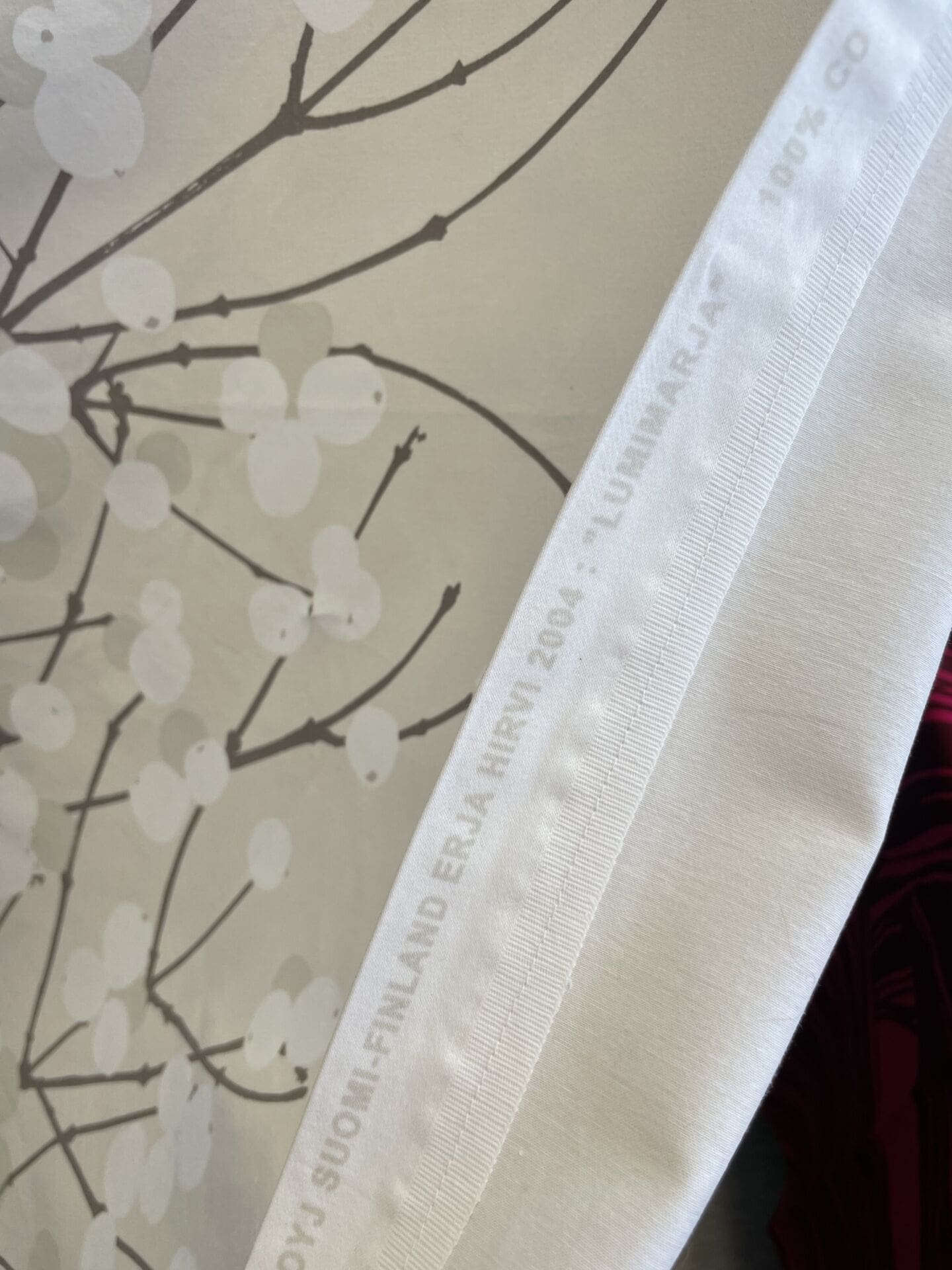 Marimekko pöytäliina Lumimarja 142x188cm luonnonvalkoinen Erja Hirvi. Hyvä kunto, puuvillasatiinia.