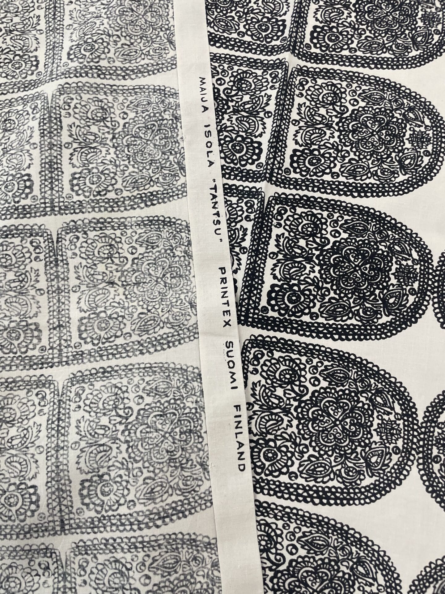 Marimekko vintage kangas Tantsu 128x150cm Maija Isola Printex. Puuvillaa. Hyvä kunto. Osa sivuista ommeltu.
