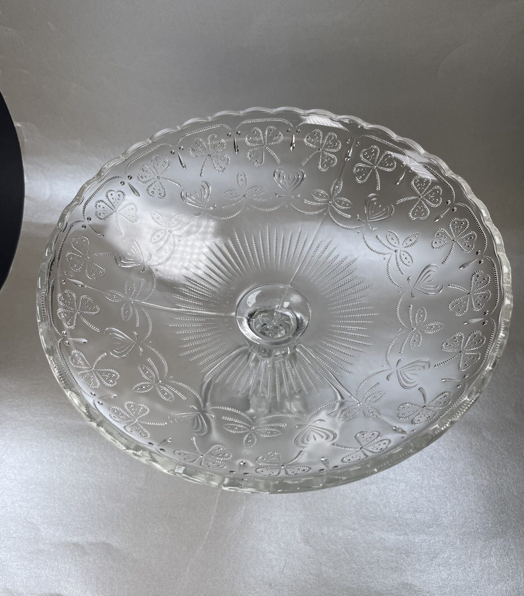 Nuutajärvi Apila iso tarjoilukulho. Korkeus 19 cm, halkaisija 23 cm. Hyvä kunto, hyvin vähäistä käytön jälkeä. Ei lohkeamia.