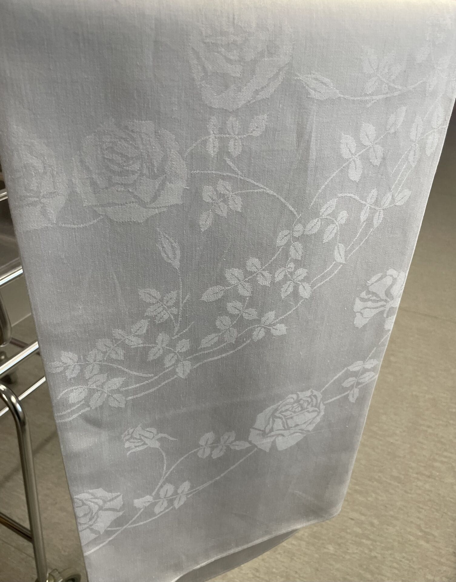 Tampella pöytäliina Ruusu-unelma 128x122cm. Hyvä kunto. Suunnittelija Aili Rancken. Mallia valmistettiin 1924-67.