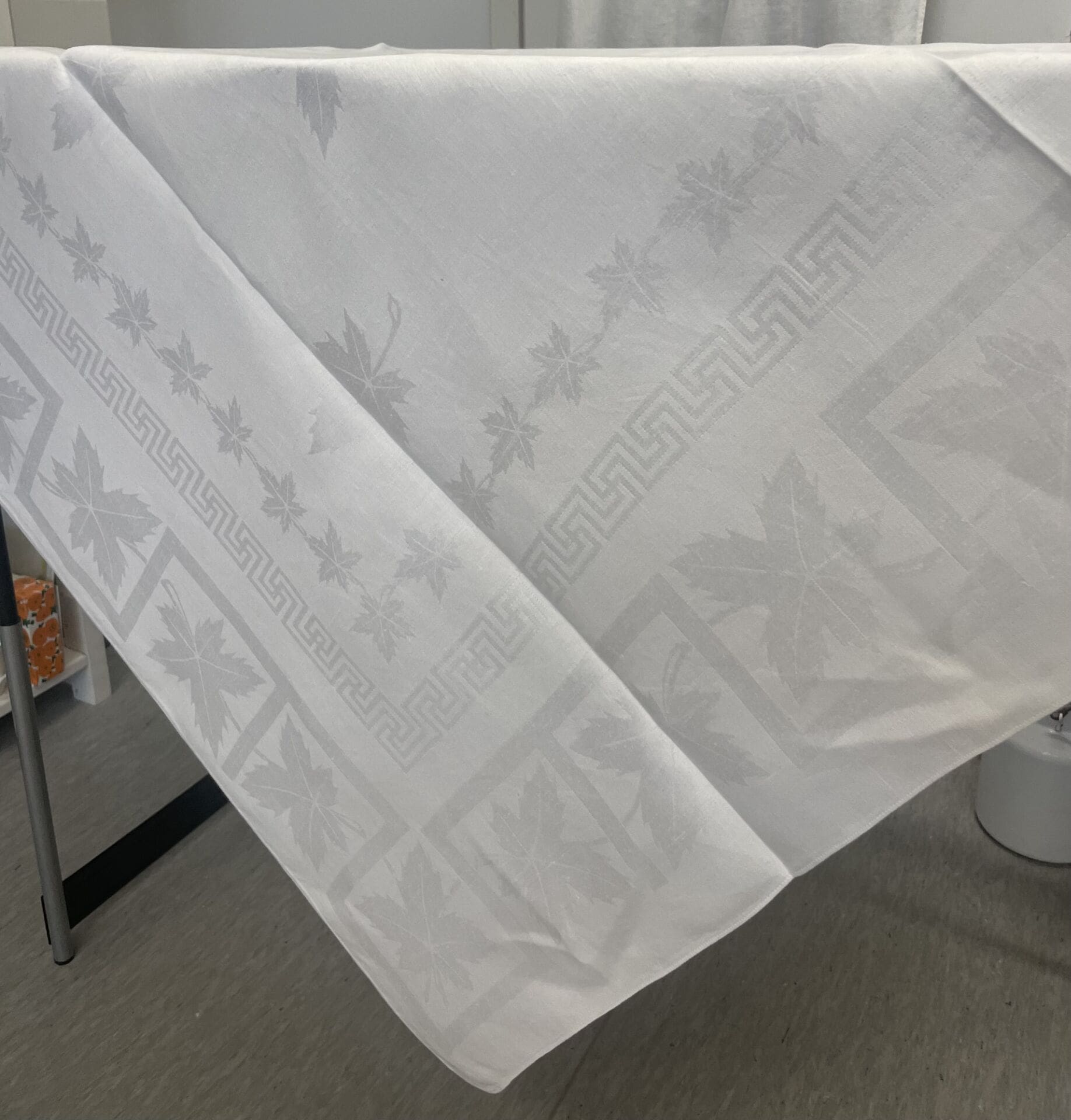 Tampella Vaahtera pöytäliina 128x126cm Aili Rancken. Hyvä kunto. Pellavaa, extra A-laatu. Oli tuotannossa 1919-74.